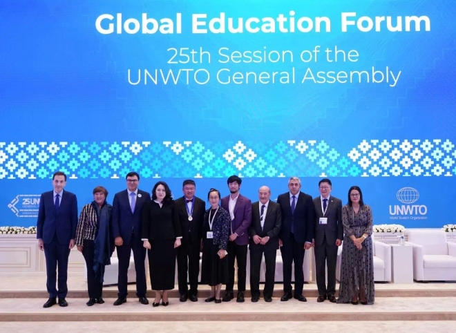 On October 19th, Professor Bao Jigang, from the School of Tourism Management at Sun Yat-sen University, was officially awarded the 16th UNWTO Ulysses Prize during the 25th UNWTO General Assembly held in Uzbekistan. Professor Bao Jigang is the first Chinese scholar to receive this prestigious award since its establishment. Professor Bao Jigang stated in his subsequent speech "Receiving this award is a testament to the international recognition of the overall level of internationalization in Chinese tourism education and research within the academic community. It highlights our progress in promoting global tourism knowledge and expertise."