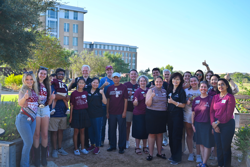 Department of Hospitality, Hotel Management & Tourism Texas A&M University students and faculty celebrating at a College Football "Tailgate" event.